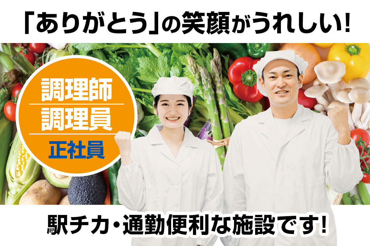 介護施設にて調理師・調理員正社員募集!駅チカ・通勤便利