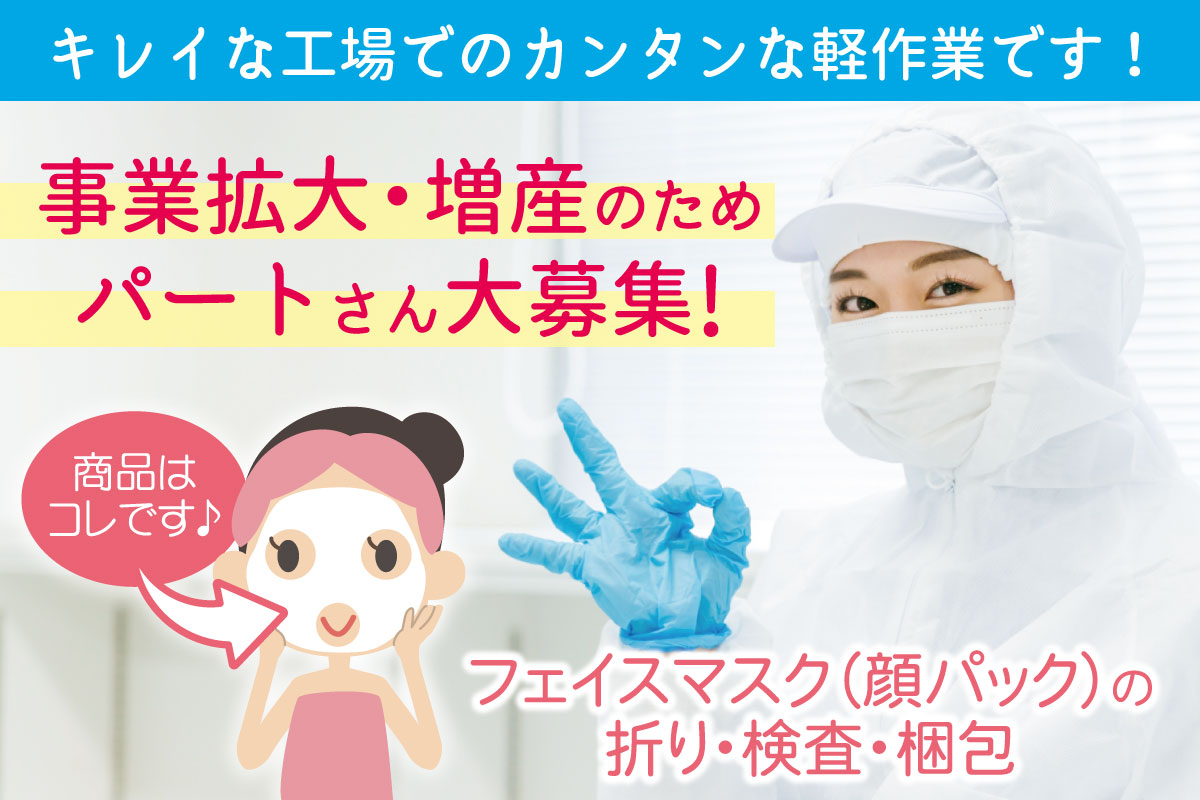 フェイスマスクの折り・検査・梱包/未経験可