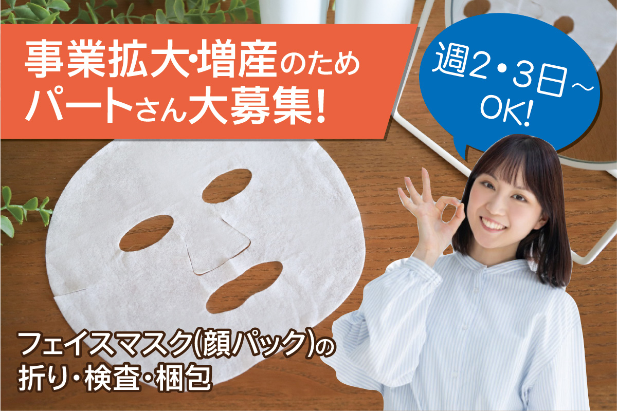 週2・3日~勤務OK!フェイスマスクの折り・検査・梱包