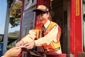 八日市IC料金所での高速道路料金所スタッフ